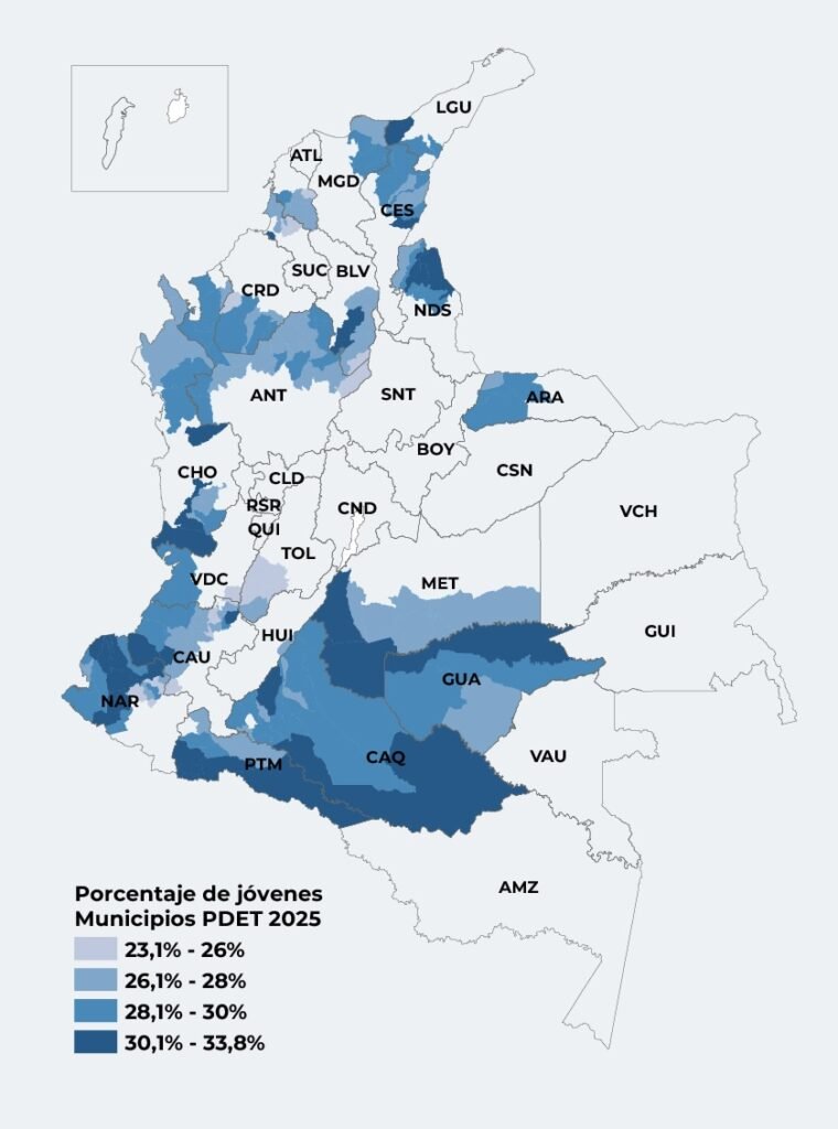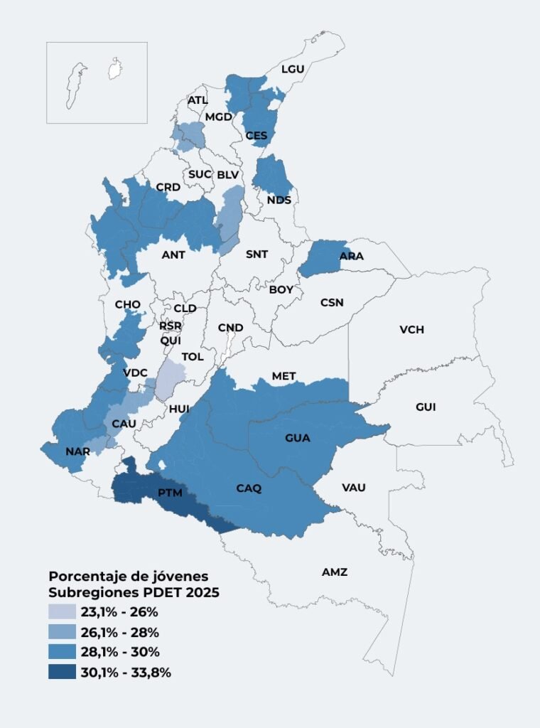 Del total de jóvenes de 14 a 28 años de la población total PDET, el