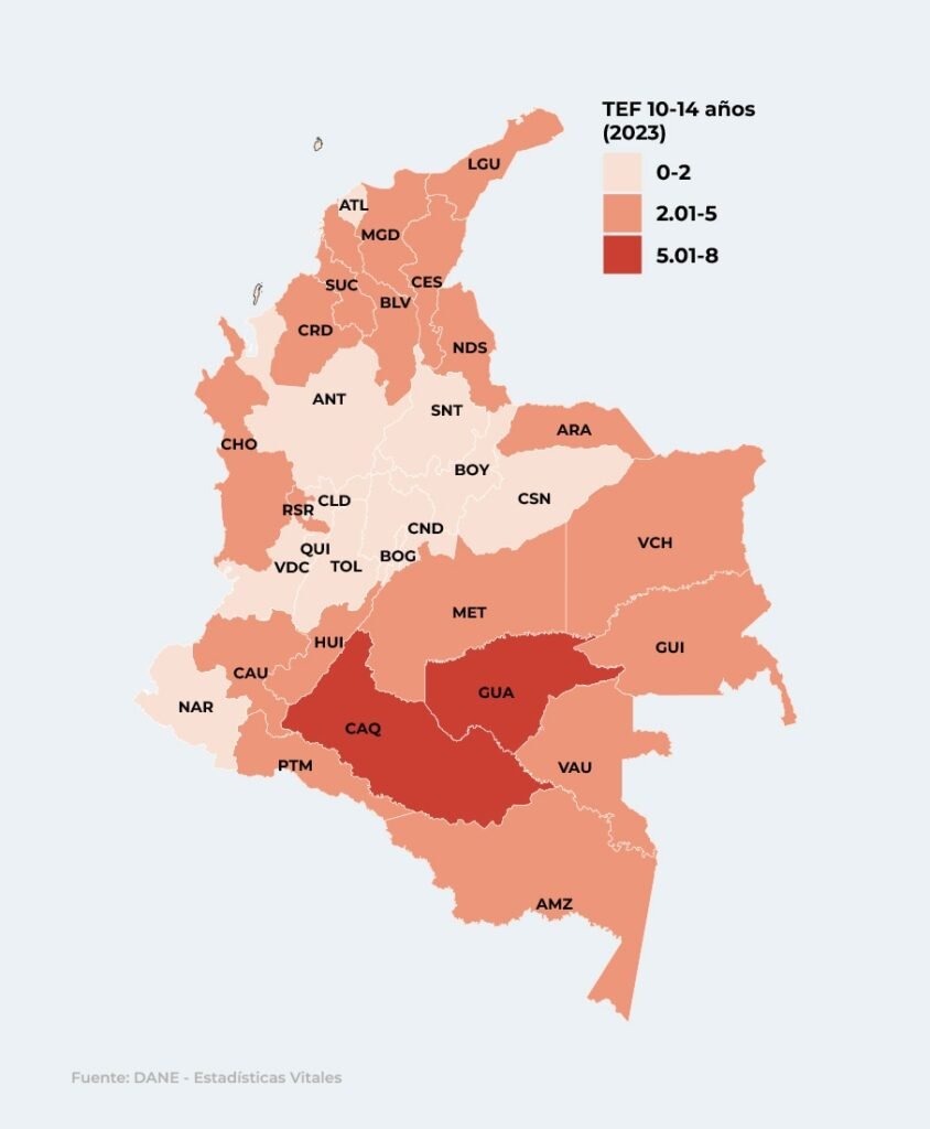 Los municipios con mayor y menor tasa de fecundidad de 10 a 14 años por cada 1.000 mujeres para 2023 son: